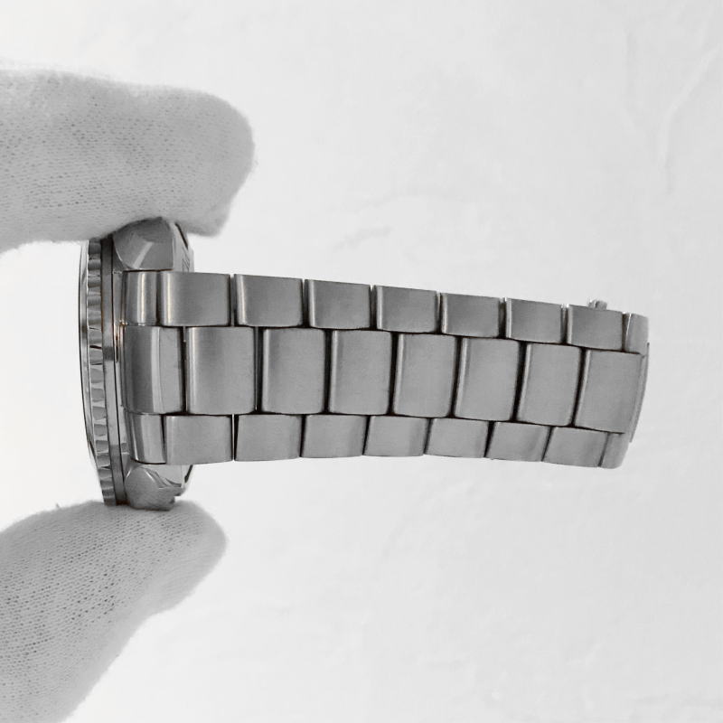 オメガのダイバーズモデルとして迫力のあるビッグケースにがつちりとしたターンドベゼル、ヘリウムガスエスケープバルブを備えるモデルです。