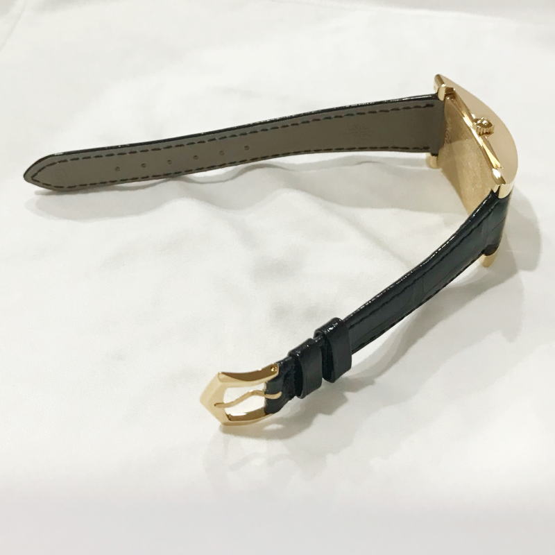 シェイプのきれいなイエローゴールドケースはやわらかな曲線面によりエッジのシャープさが際立ち、コントラストがきれいで魅力的な1本です。