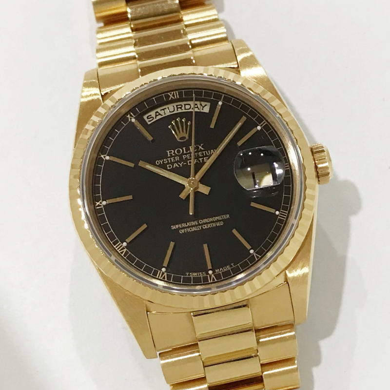 ロレックス デイデイト 18238 ブラックダイヤル K18イエローゴールド E番 、国際サービス保証書付、きれいで貴重なコンディションです。