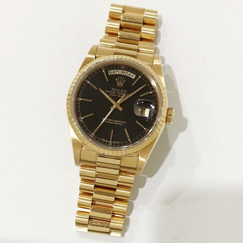 このようなコンディションをキープした美品の デイデイト 18238 オールドブラックダイヤルは、今後さらに入手がむずかしくなると思います。