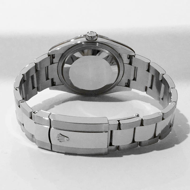 ROLEX オイスターブレスレット はしなやかで装着感も良く、新型デイトジャスト 36mm 人気の高い ブライトブラック文字盤です。