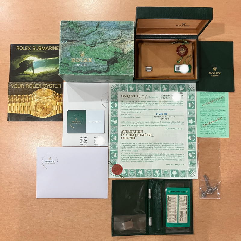 ROLEX 海外ディーラー販売ギャランティ、国際サービス保証書、タグ、シードキット、イカリ、冊子、BOXなどが付属いたします。