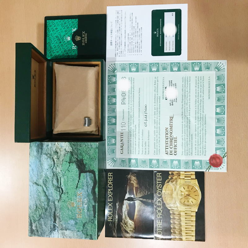 ROLEX フランス ディーラー販売ギャランティ、国際サービス保証書、エクスプローラー冊子、ROLEX純正BOXが付属いたします。